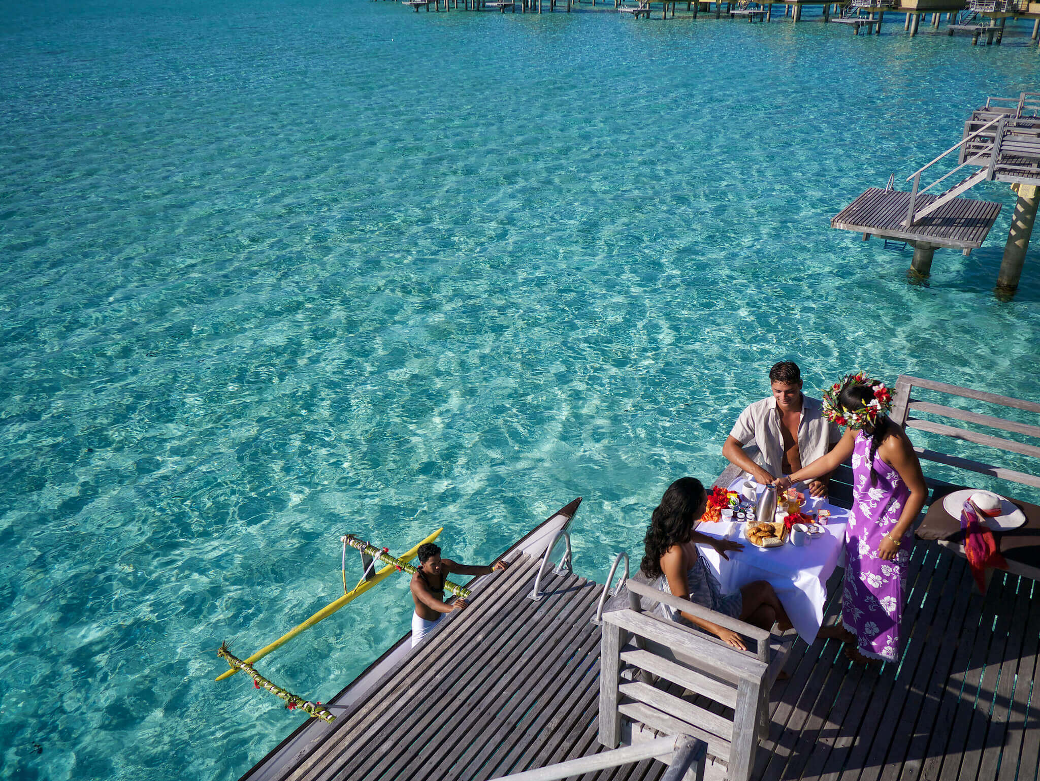 Please note this resort is only accessible by boat from the airport, located on a motu (islet). To organize your boat transfer, please contact our concierge service at concierge.borabora.lemoana@ihg.com.