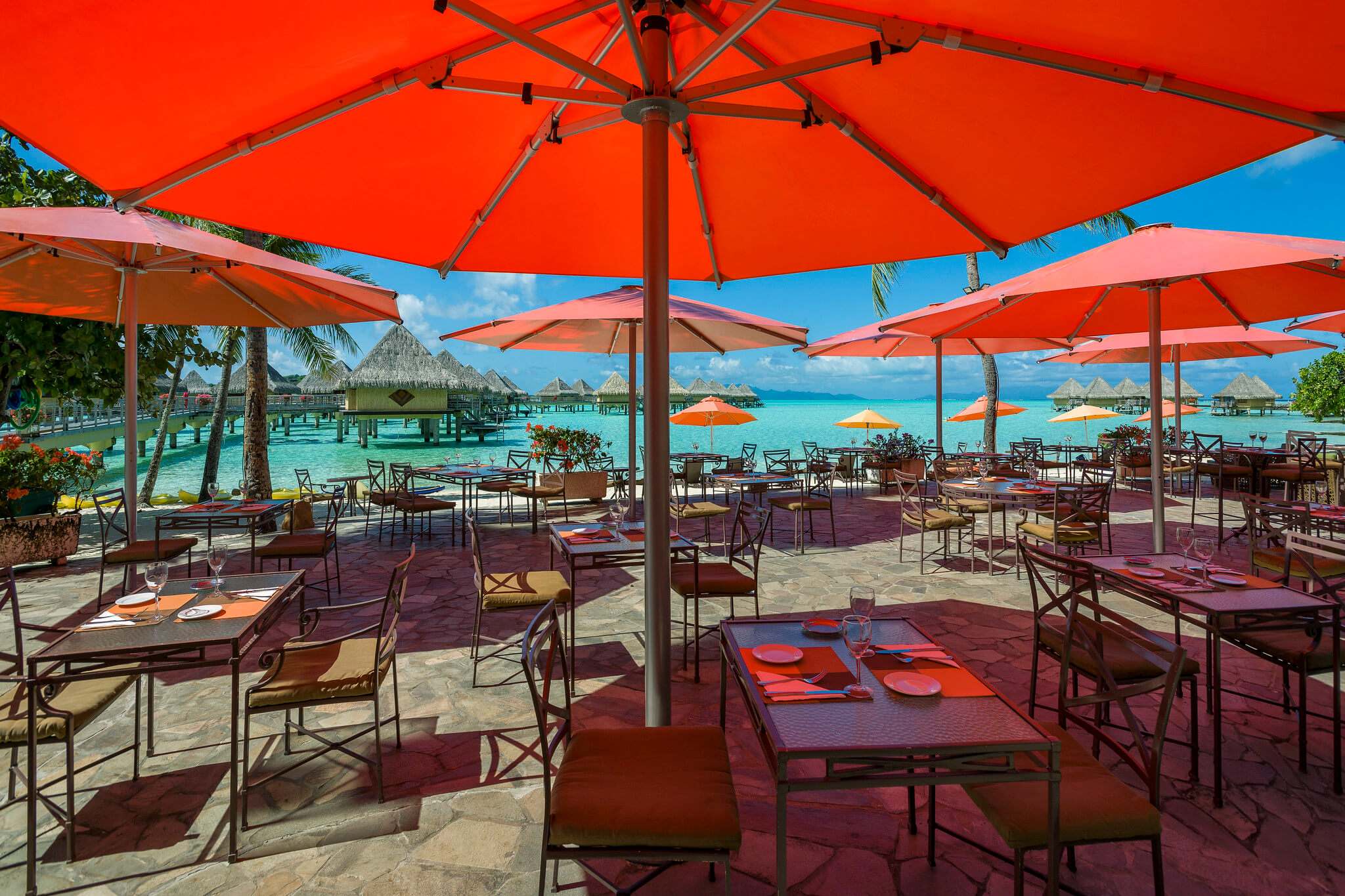 Lunch beneath palm trees, sundowners by the turquoise lagoon, a light afternoon bite before dinner—our postcard-worthy terrace is the perfect place to enjoy refreshing island cuisine al fresco. Open all day, stop by for chilled fresh juice, relax with a colorful cocktail, or taste signature dishes include “poisson cru à la tahitienne,” the quintessential Polynesian creation of marinated fish, tomatoes, cucumber, lime and coconut milk.